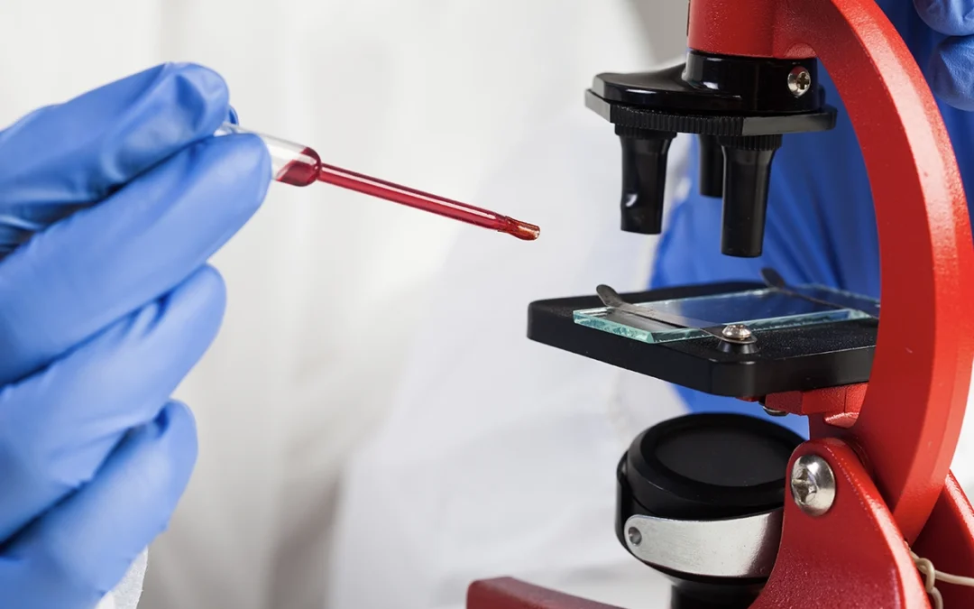 Bij een EMB-test wordt er gekeken naar een druppel bloed die onder de microscoop wordt beoordeeld.